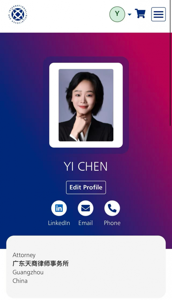 陈依律师已正式成为国际律师协会(IBA)的个人会员,并同时加入其亚太区域论坛(Asia Pacific Regional Forum)及女性律师委员会(Women Lawyers’ Committee),积极参与亚太区域法律事务及国际法律职业发展的专业交流。