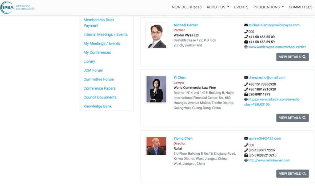 Both the IBA and IPBA are internationally recognized organizations that bring together leading legal professionals across jurisdictions and play an important role in promoting cross-border legal exchange and cooperation.